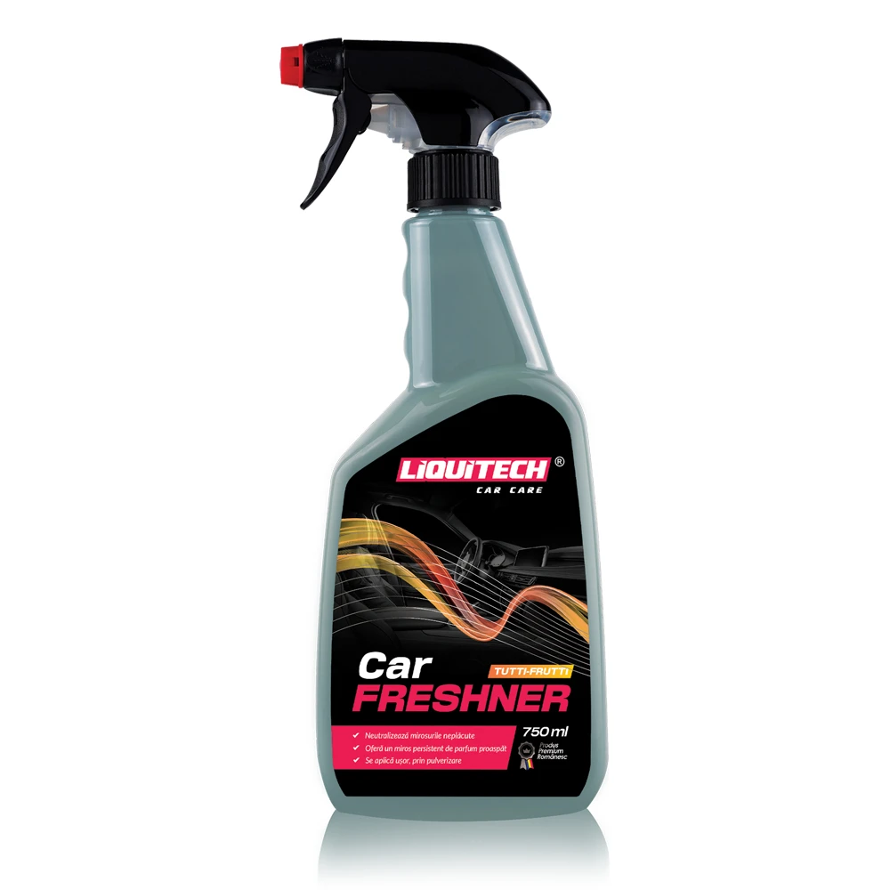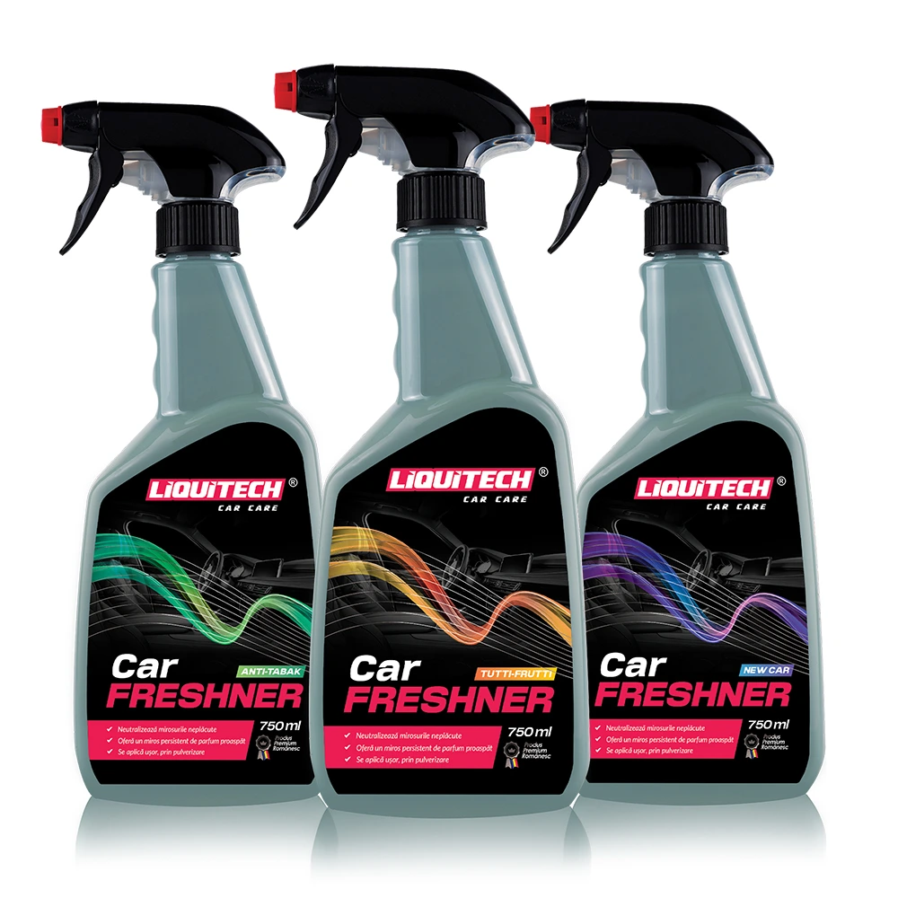 UTILIZARE: Se curăță interiorul automobilului cu gama de produse LIQUITECH. Se pulverizează o cantitate mică de LIQUITECH CAR FRESHNER în zone diferite ale mașinii: în față, în spate, sub scaune etc. In câteva secunde se elimină mirosurile neplăcute și se crează o atmosferă plăcută, parfumată si reconfortantă.