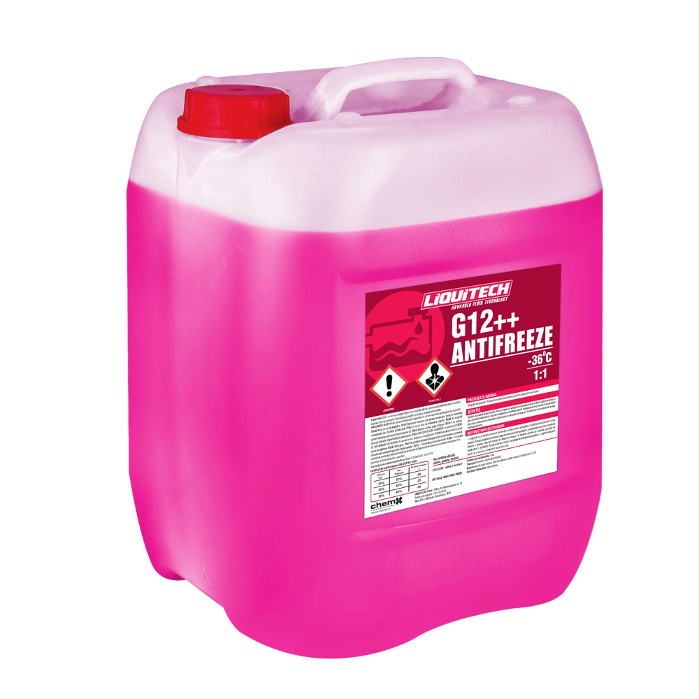 LIQUITECH G12++ este un antigel/ lichid de răcire concentrat, cu durata de utilizare extinsă (EXTENDED LIFE). Este fabricat din etilenglicol, stabilizatori, antispumanți și inhibitori de coroziune organici si silicati (tehnologia Si-OAT). Nu conține nitriți, amine, fosfați, sau borați. LIQUITECH G12++ este colorat in roz.